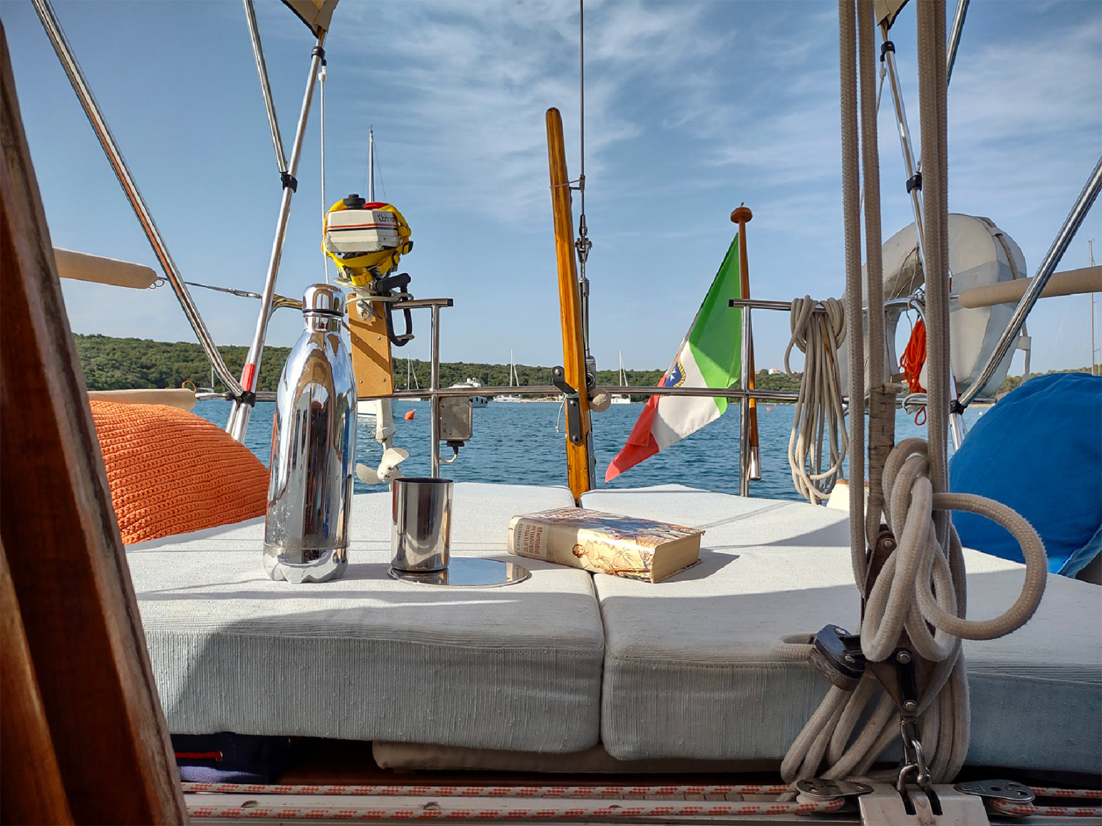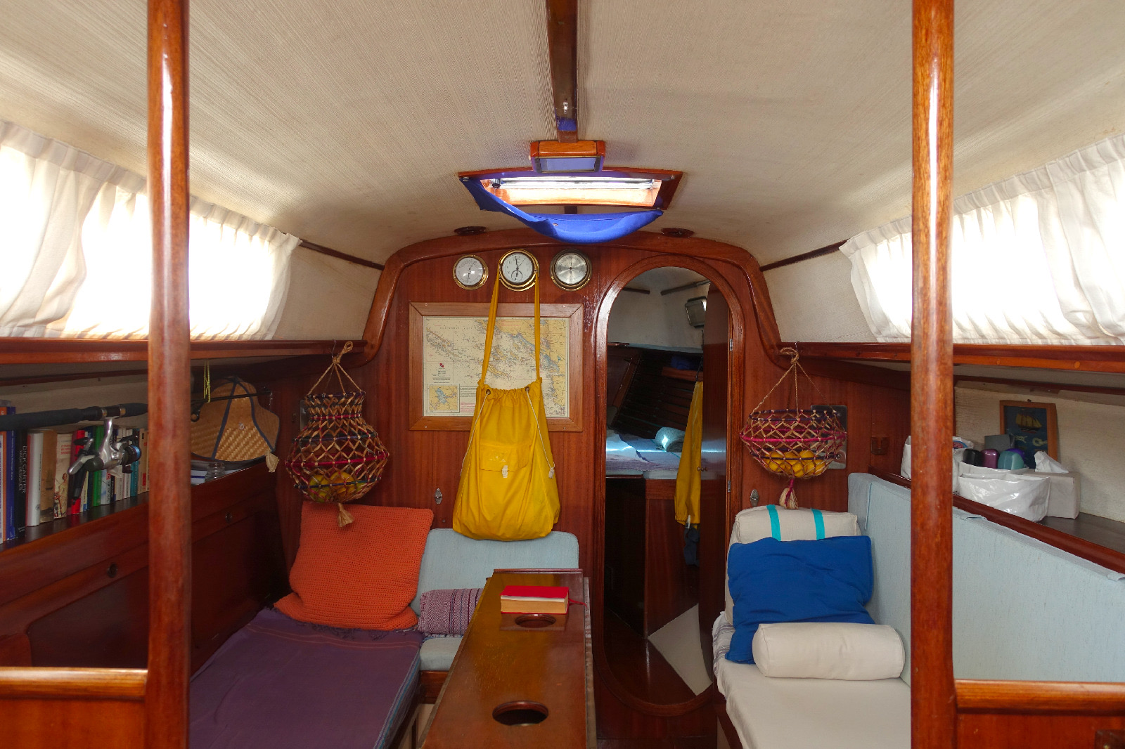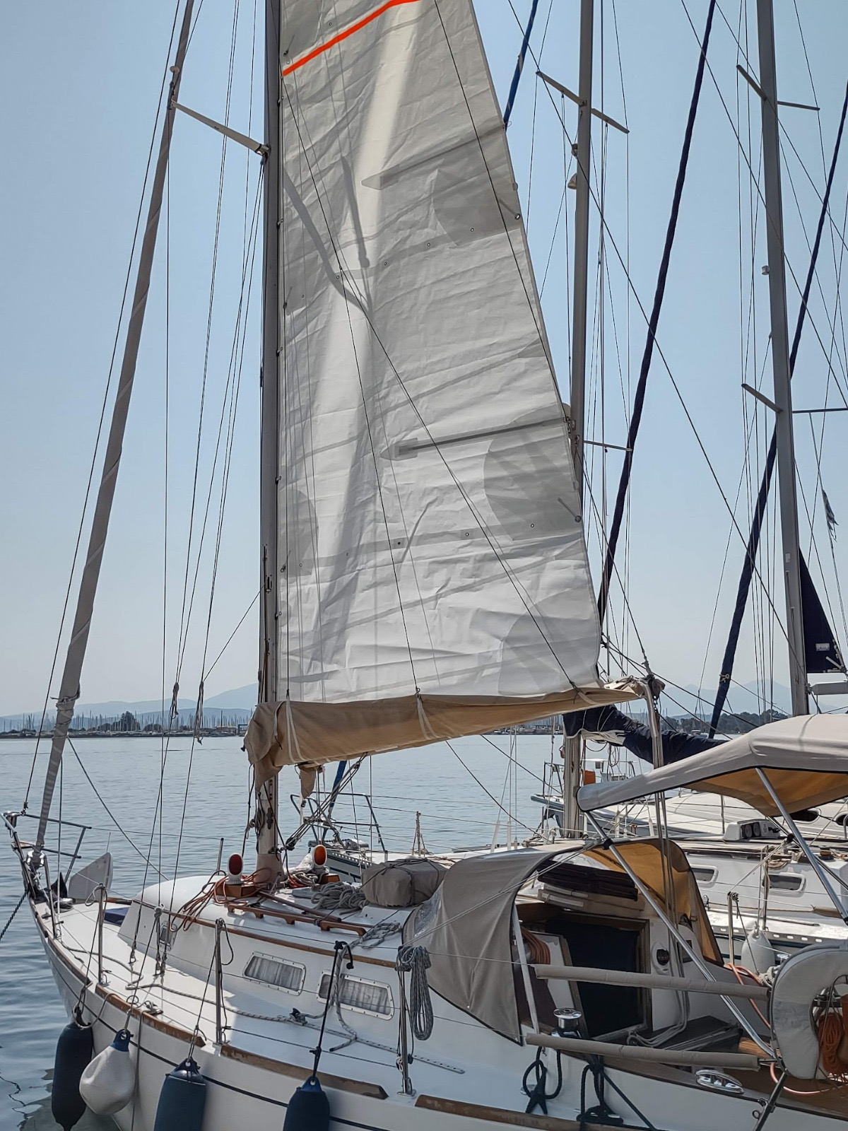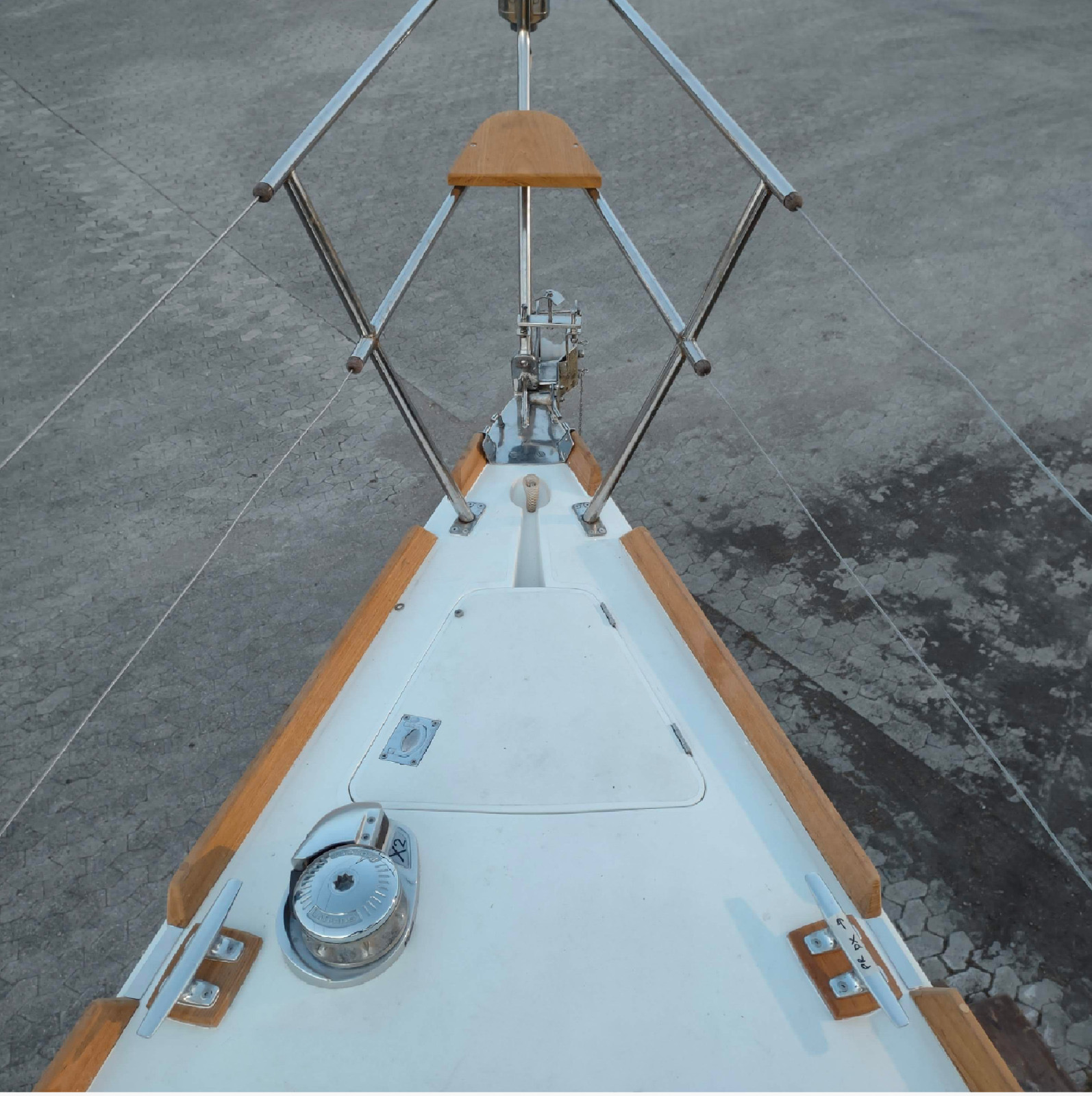 Removal by scraping of all internal square and cabin lining, repainting with gelcoat and assembly of insulating panels. Replacement of 5 floorboards. On deck, removal of the old paint, 3 coats of underlayment, 3 coats of paint, 2 coats of non-slip. Disassembly Polishing/Chrome plating of all metals and winch. Replacement of all external teak. Postponement of all maneuvers in the cockpit. New production of the anchor locker door. | |